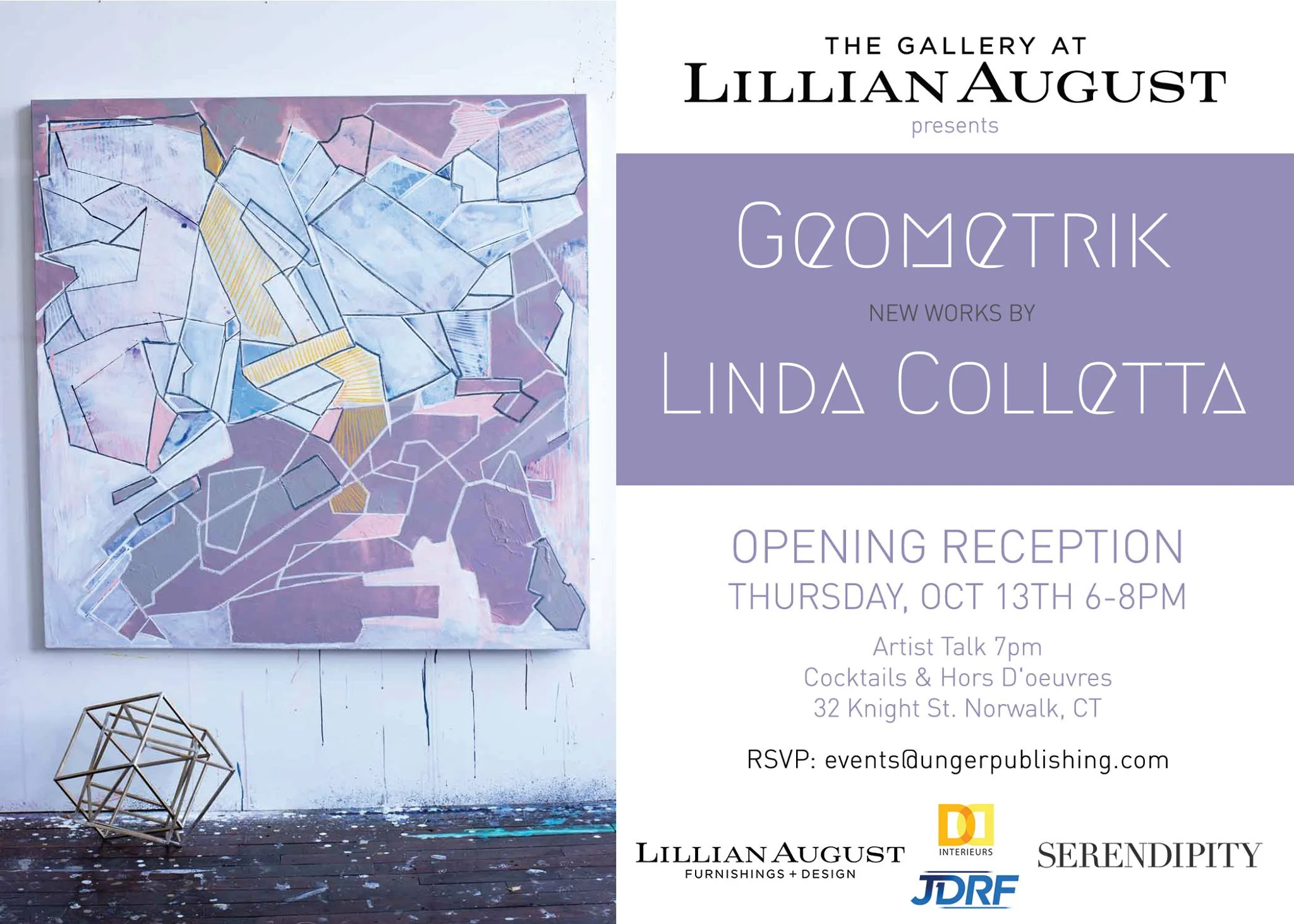 Preview the new collection of abstract paintings by local artist, Linda Colletta at an opening reception at The Gallery at Lillian August.