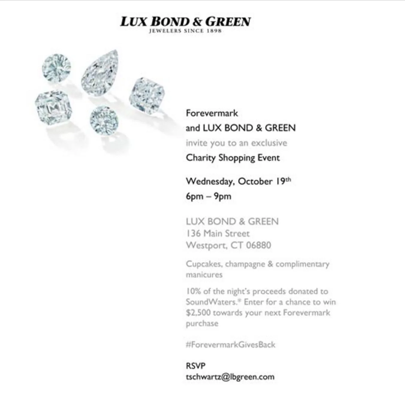 Cupcakes, champagne, and complimentary manicures. 10% of the nights proceeds donated to SoundWaters. Enter for a chance to win $2500. towards your next Forevermark purchase.