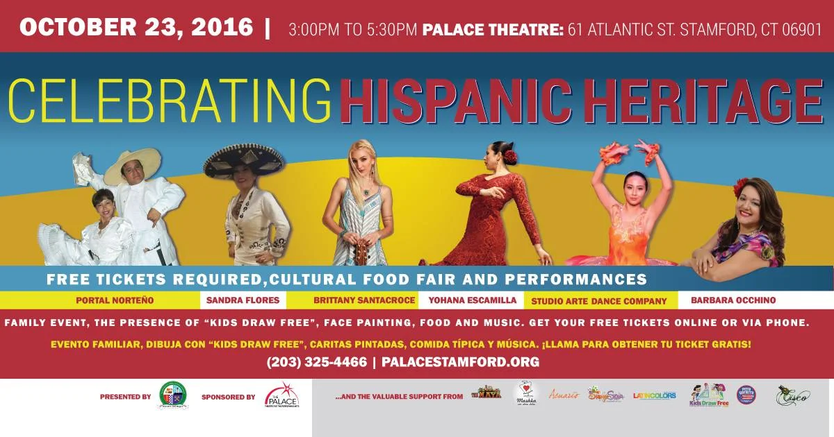 The Mayor's Multicultural Council of Stamford sponsored by the Palace Theater presents an event to Celebrate Hispanic Heritage, to share and recognize the histories, cultures and contributions of American citizens whose ancestors came from Spain, Mexico, the Caribbean and Central and South America.