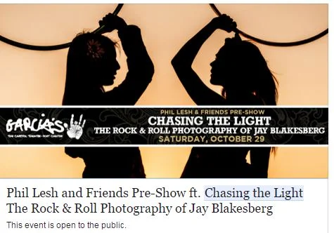 An in-person slide show/storytelling presentation about Jay’s 35 year journey in rock and roll photography - from documenting the Grateful Dead to his latest book Hippie Chick: A Tale of Love, Devotion & Surrender. Presentation is followed by a Q&A session with the audience. Jay will be signing copies of his books post presentation.