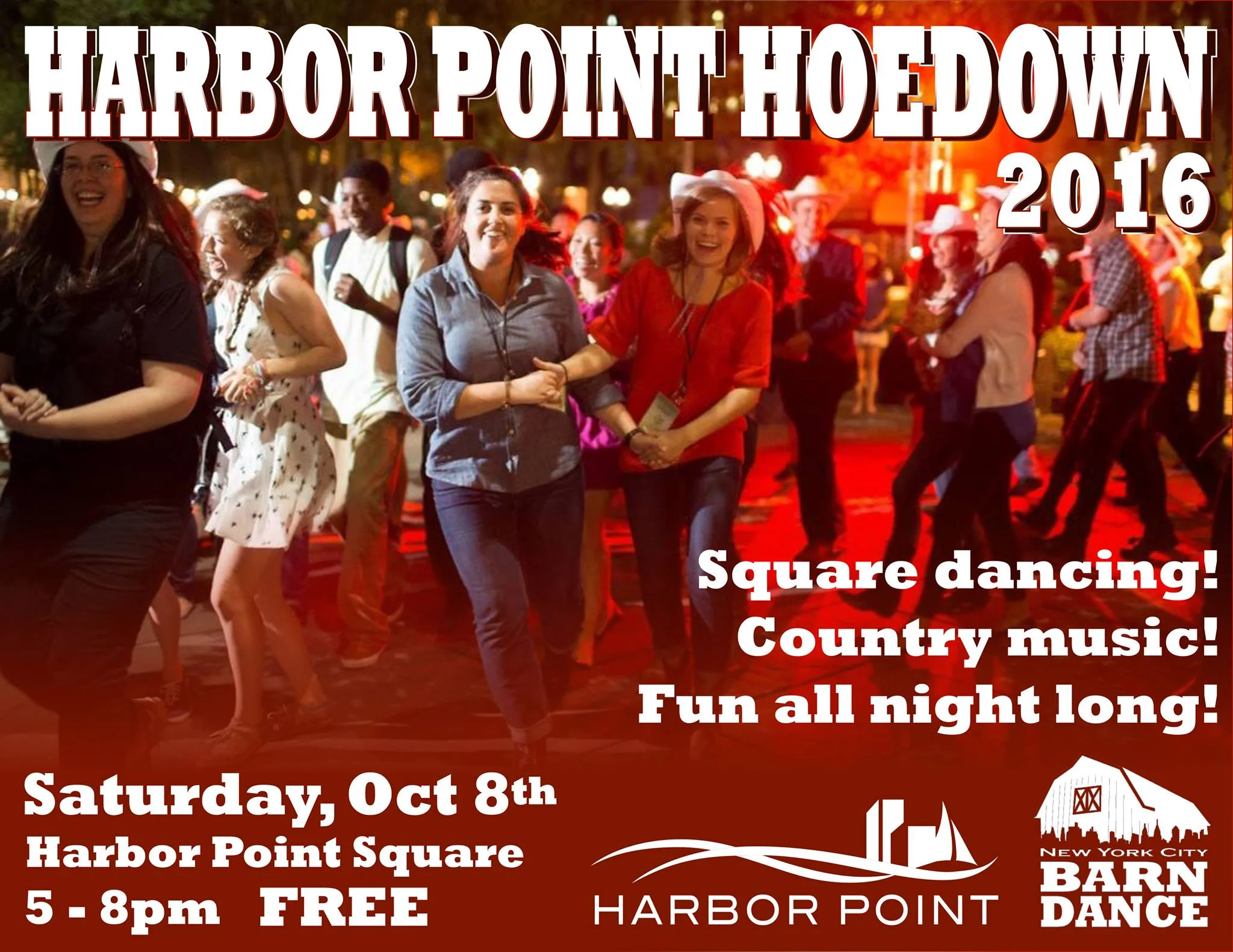 Do-si-do and promenade at a dance party like no other, with a whole lot of country music and fun. On Saturday, October 8th from 5-8pm in Harbor Point Square, do-si-do the night away with our featured caller, Dave Harvey of NYC Barn Dance, to the boot-stomping stylings of our live band. No experience? No partner? No problem! You're bound to make some new friends, and Dave will teach ya the steps. One more thing: the whole thing is FREE!