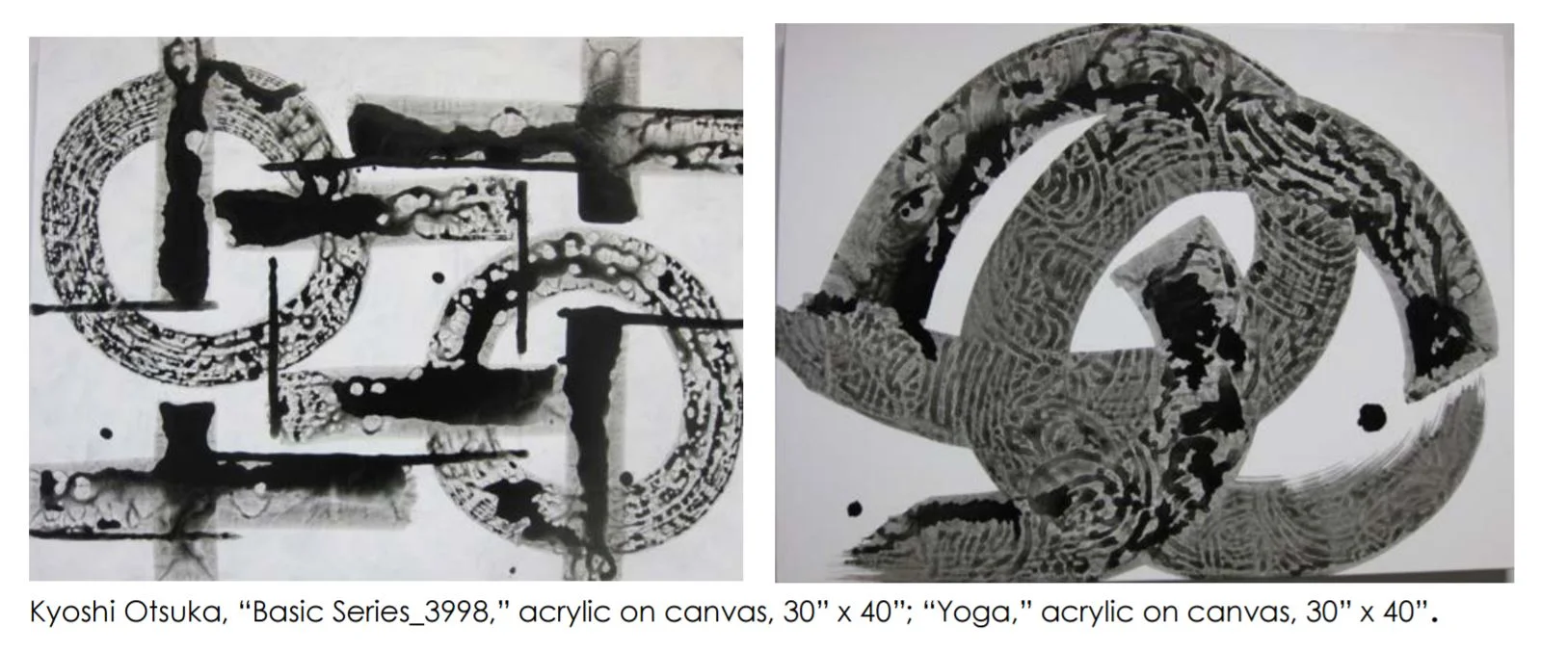 Many of the paintings in Soyo Kaze are black and white, a few use color. In each one, space and lightness are as important as movement. Otsuka’s work is often gestural, infused with Japanese sensibilities of landscape, but his work also speaks to an American tradition of generous and infinite space. Otsuka cites Richard Wilhelm’s translation of the I Ching to elucidate his focus in this new exhibition: “In nature, it is the wind that disperses the gathered clouds, leaving the sky clear and serene. In human life it is penetrating clarity of judgment that thwarts all dark hidden motives. The penetrating quality of the wind depends upon its ceaselessness. This is what makes it so powerful; time is its instrument.”