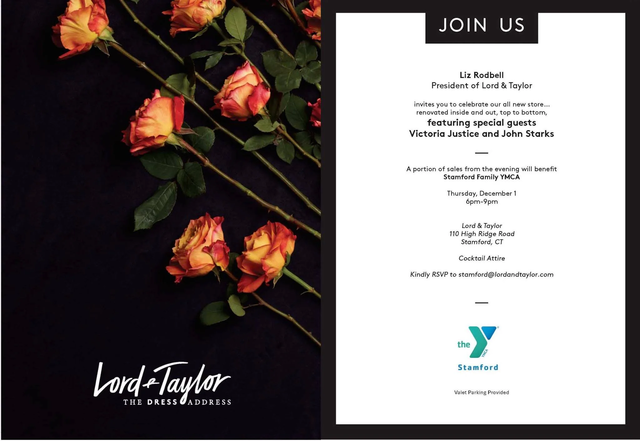 Lord & Taylor, a department store icon in Stamford since 1969, presents their Grand Opening Gala in celebration of their recently completed massive renovation. Special Guests Include NBA Superstar John Starks and Actress/Singer Victoria Justice.