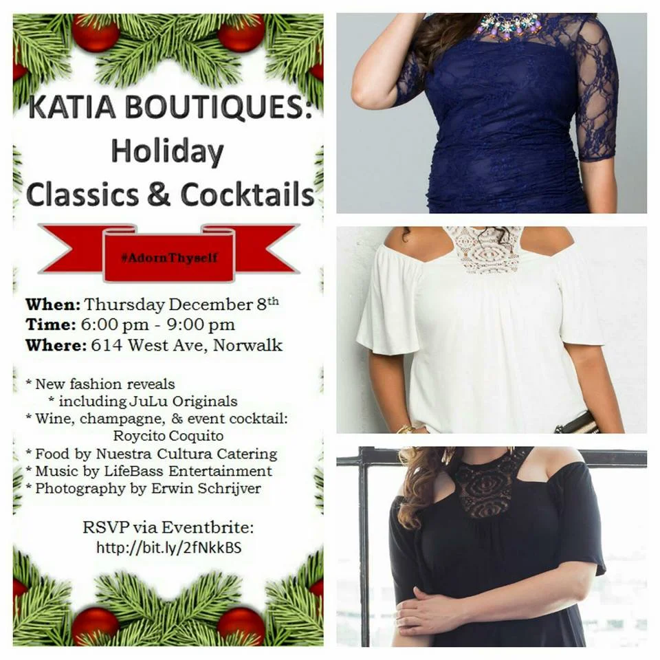 Join us at Katia Boutiques for a "Holiday Classics & Cocktails" featuring clothing and accessories for all your festivate celebrations. Enjoy complimentary wine and appetizers while you show your support and shop small business for all your gift giving needs. Here are just a few of the wonderful things we have in store for you at our event: