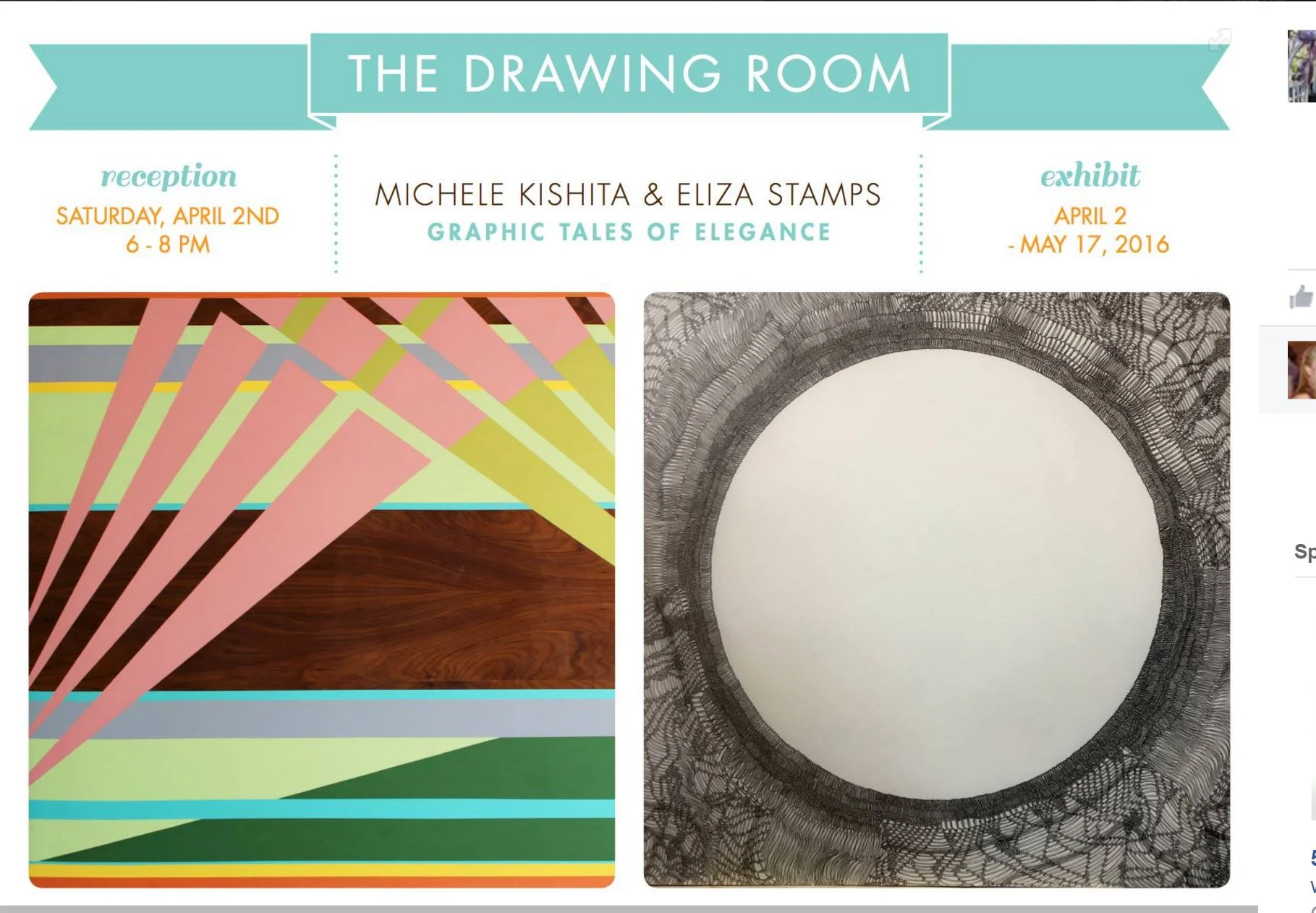 The Drawing Room Art Gallery is pleased to invite the greater public to meet the artists at the Opening Reception of Michele Kishita + Eliza Stamps: Graphic Tales of Elegance, On Saturday, April 2, 6-8pm. This is a two-person exhibition, focused on the graphically charged work of Michele Kishita and Eliza Stamps and their unique approaches to painting and drawing, respectively. This exhibition opens April 2 and runs through May 17, 2016.