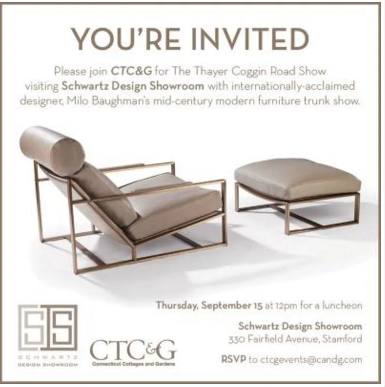 Join CTC&G for the Thayer Coggin Road Show visiting Schwartz Design Showroom with internationally acclaimed designer Milo Baughman's mid-century modern furniture line.