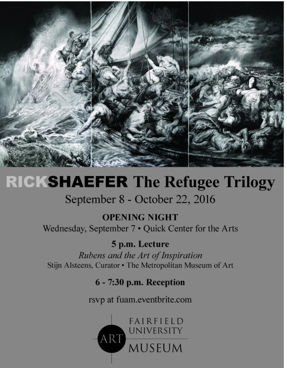 RICK SHAEFER - The Refugee Trilogy Opening Night, September 7th • Quick Center for the Arts 5 p.m. Lecture: Rubens and the Art of Inspiration Stijn Alsteens, Curator • The Metropolitan Museum of Art 6-7:30 p.m. Reception RSVP:fuam.eventbrite.com - or - events@venumagazine.com