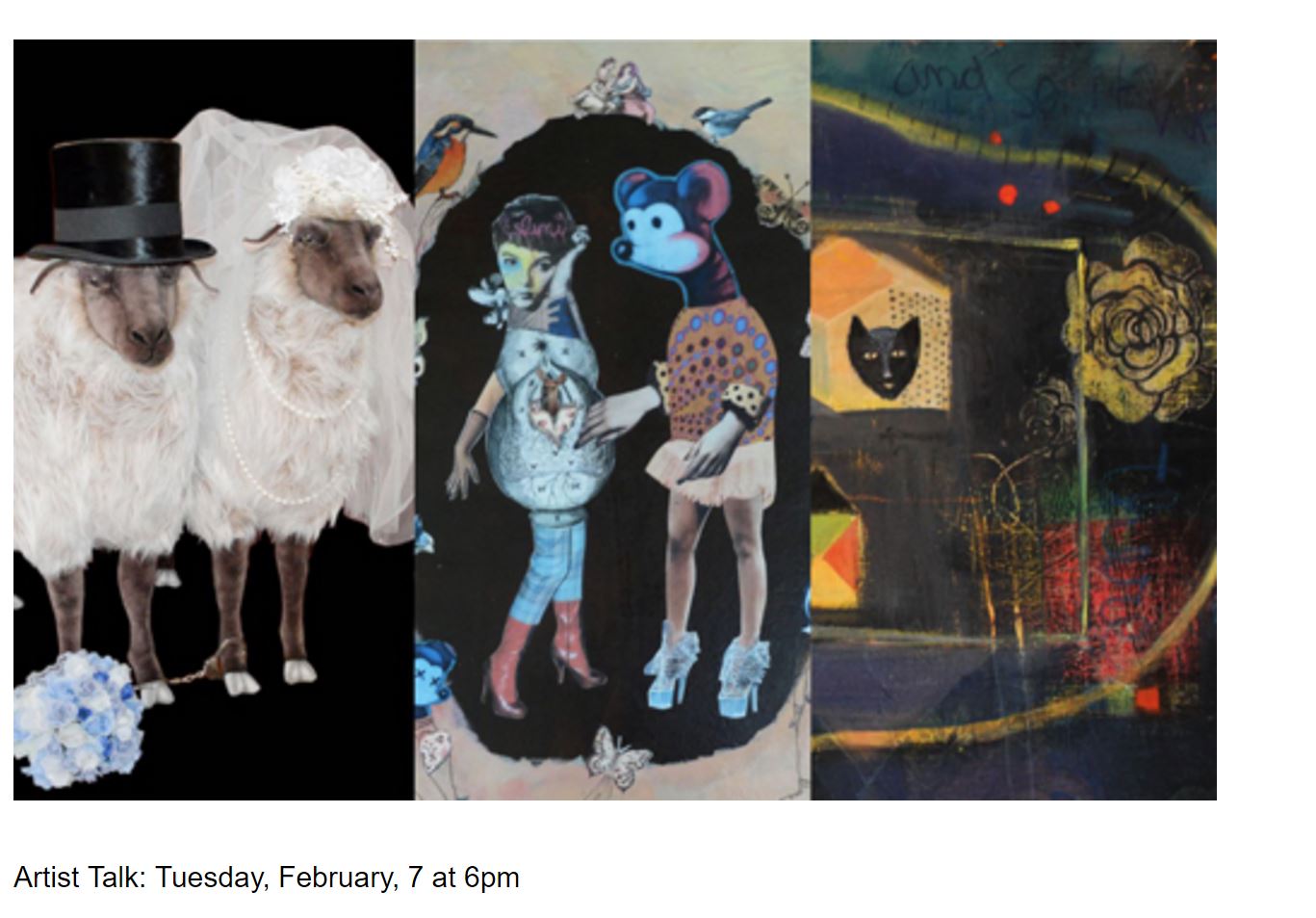 As children, most of us have delved with abandon into enchanting games of illusion, fortune-telling, and supernatural powers. In “Flights of Fantasy and Game Changes,” artists Nina Bentley, Kim Hanna, and Jane Lubin explore aspects of magical thinking in a cohesive exhibition. On Feb. 7 at 6pm, the Galleries will host an artist talk with Nina Bentley and Jane Lubin.