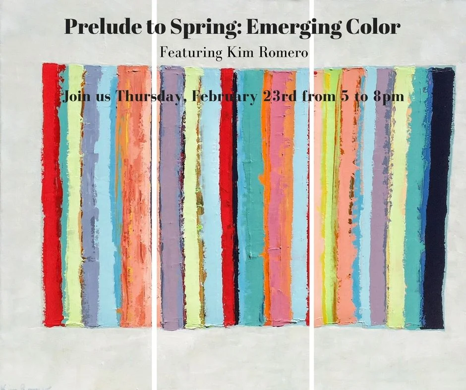 Kim Romero's popular, colorful abstracts return to Southport Galleries to kick off the Spring 2017 season. This new collection of her large acrylic canvases instantly bring color, texture and expression to a home or office setting.