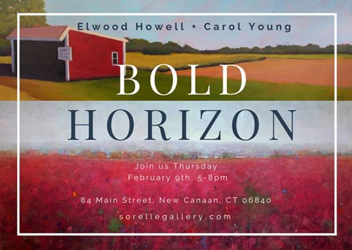 Start the New Year BOLD with Sorelle Gallery’s exhibition entitled “BOLD HORIZON: Works by Elwood Howell and Carol Young”, on display from February 9th – March 9th. Please join us for an opening reception on Thursday, February 9th from 5:00 to 8:00pm. Through color, layering, light and shadow, Young and Howell’s carefully edited compositions inspire complex, memorable conversation. Chat with the artists you love as you toast to the New Year!