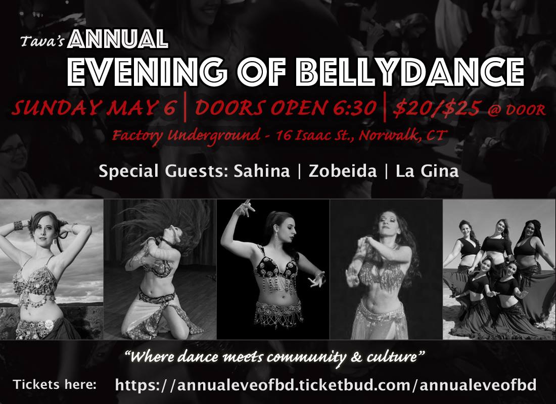 lease join Tava, professional bellydancer and Norwalk resident, for her Annual Evening of Bellydance. This exciting night returns to Factory Underground in Norwalk, CT (16 Isaac St.) on Sunday May 6th at 6:30PM.