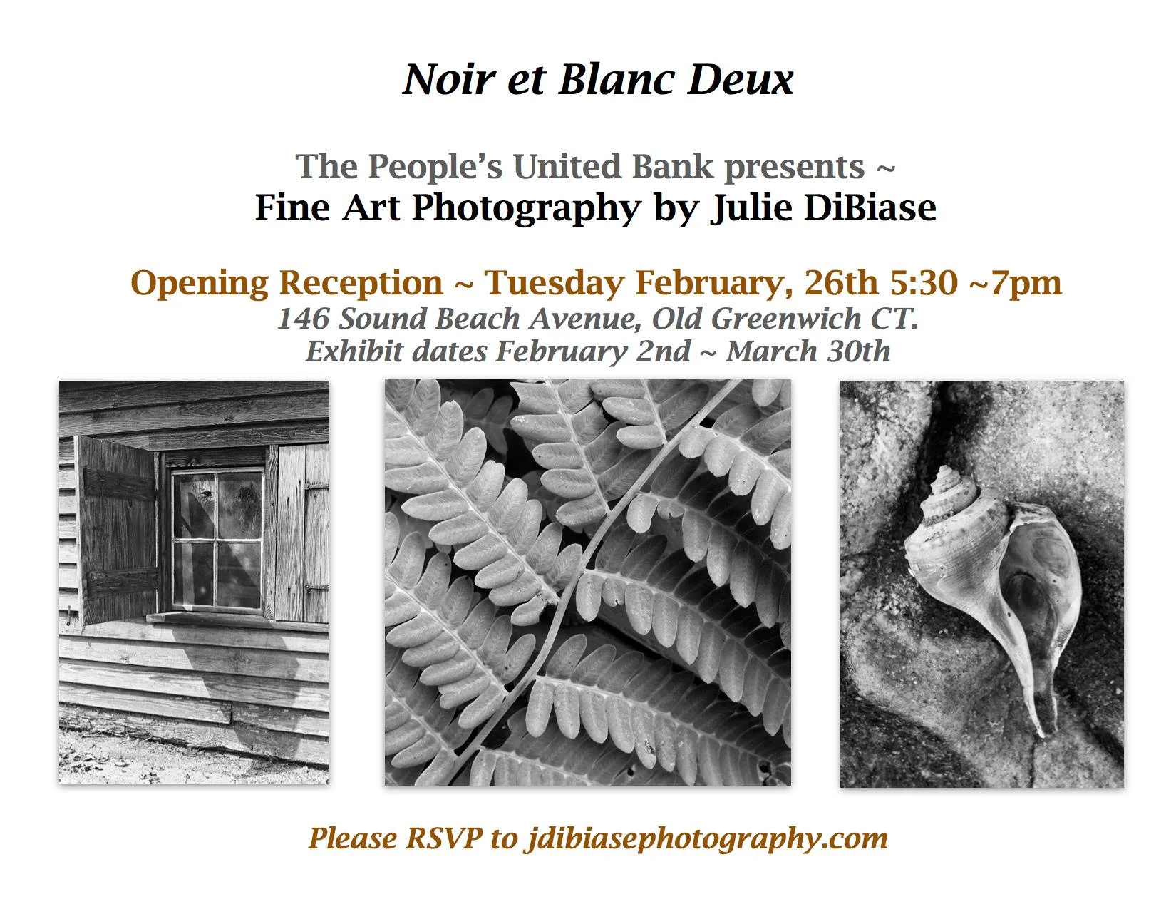 Art reception featuring fine art photography by Julie DiBiase, hosted by People’s United Bank and the Art Society of Old Greenwich.