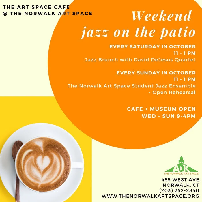 Sunday 10/17 // 11-1pm The Norwalk Art Space Student Jazz Ensemble, led by our Music Director @daviddejesusmusic, playing from 11-1pm on the front patio.