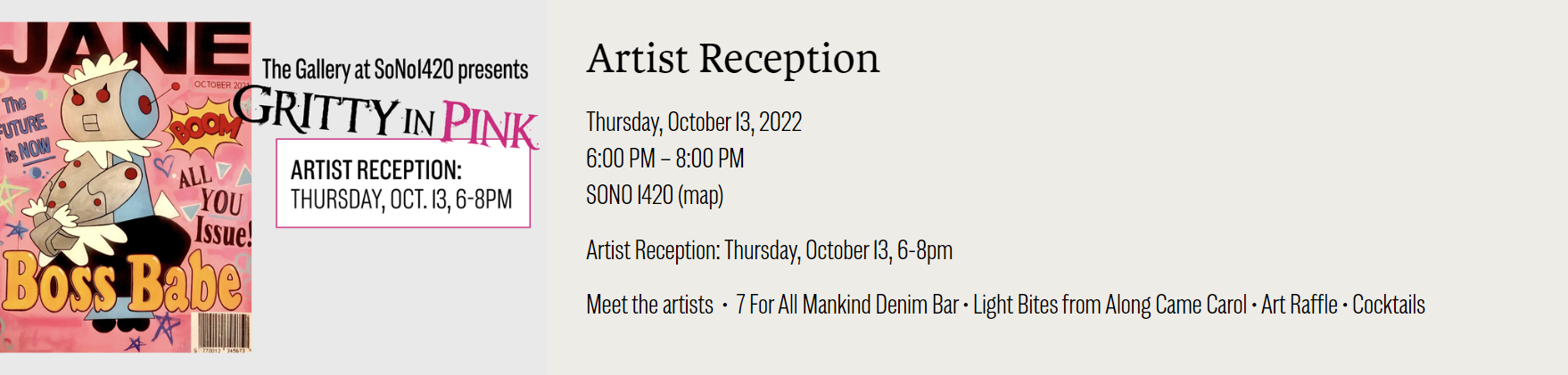 Meet the artists · 7 For All Mankind Denim Bar · Light Bites from Along Came Carol · Art Raffle · Cocktails