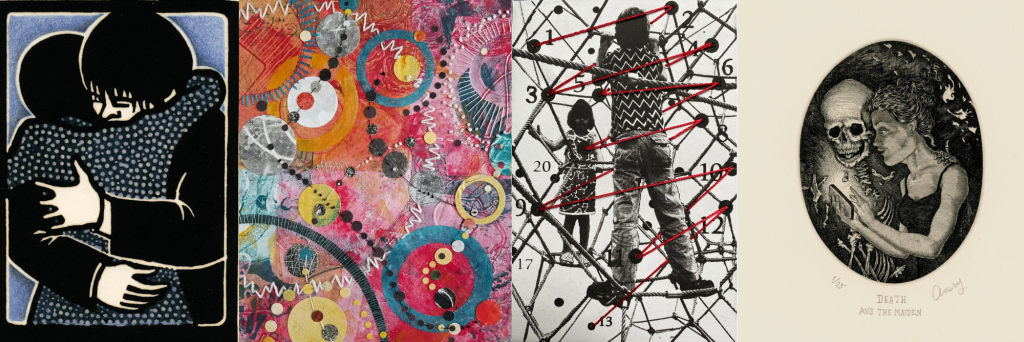CONNECT is an exhibition prompted by the theme of “communication” where artists created small prints with a variety of “messaging,” “news,” or whatever they wanted to “post.” People around the world have been plunged into communicating through technology. Internet and cellphone communication have become lifelines for staying connected to family and friends or for virtually gathering on momentous occasions. This traveling show by Boston Printmakers presents the best in contemporary, traditional and experimental printmaking, from members across North America. This collection of prints captures the creativity of artists and documents a global spirit of togetherness through communication.