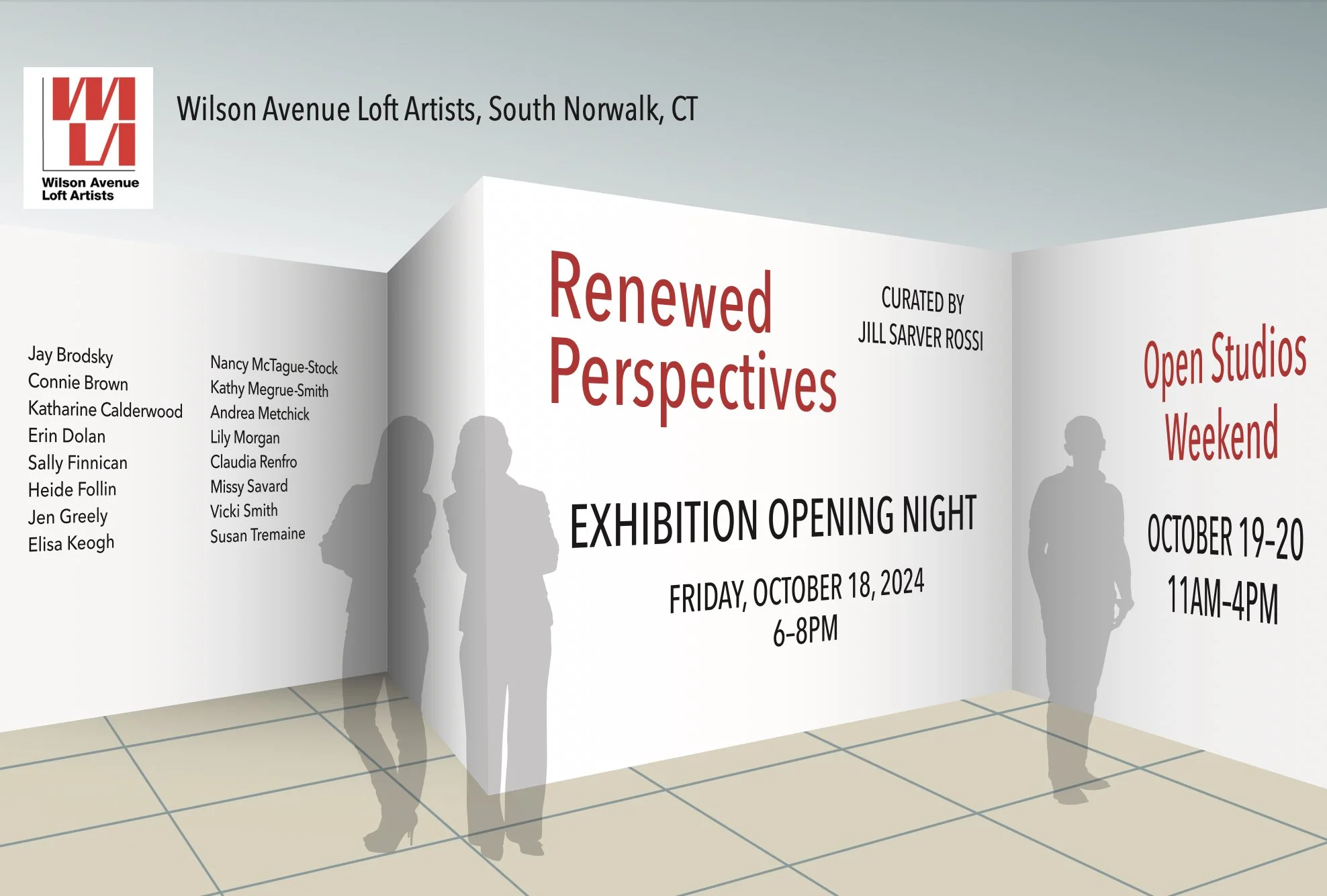 Wilson Avenue Loft Artists "Renewed Perspectives" Open Studios Weekend!!! Visit during the Exhibition Opening Friday, October 18 from 6 to 8 pm or Saturday, October 19 and Sunday, October 20 from 11 am to 4 pm. More info at the Wilson Avenue Loft Artists website: www.wilsonavenueloftartists.com