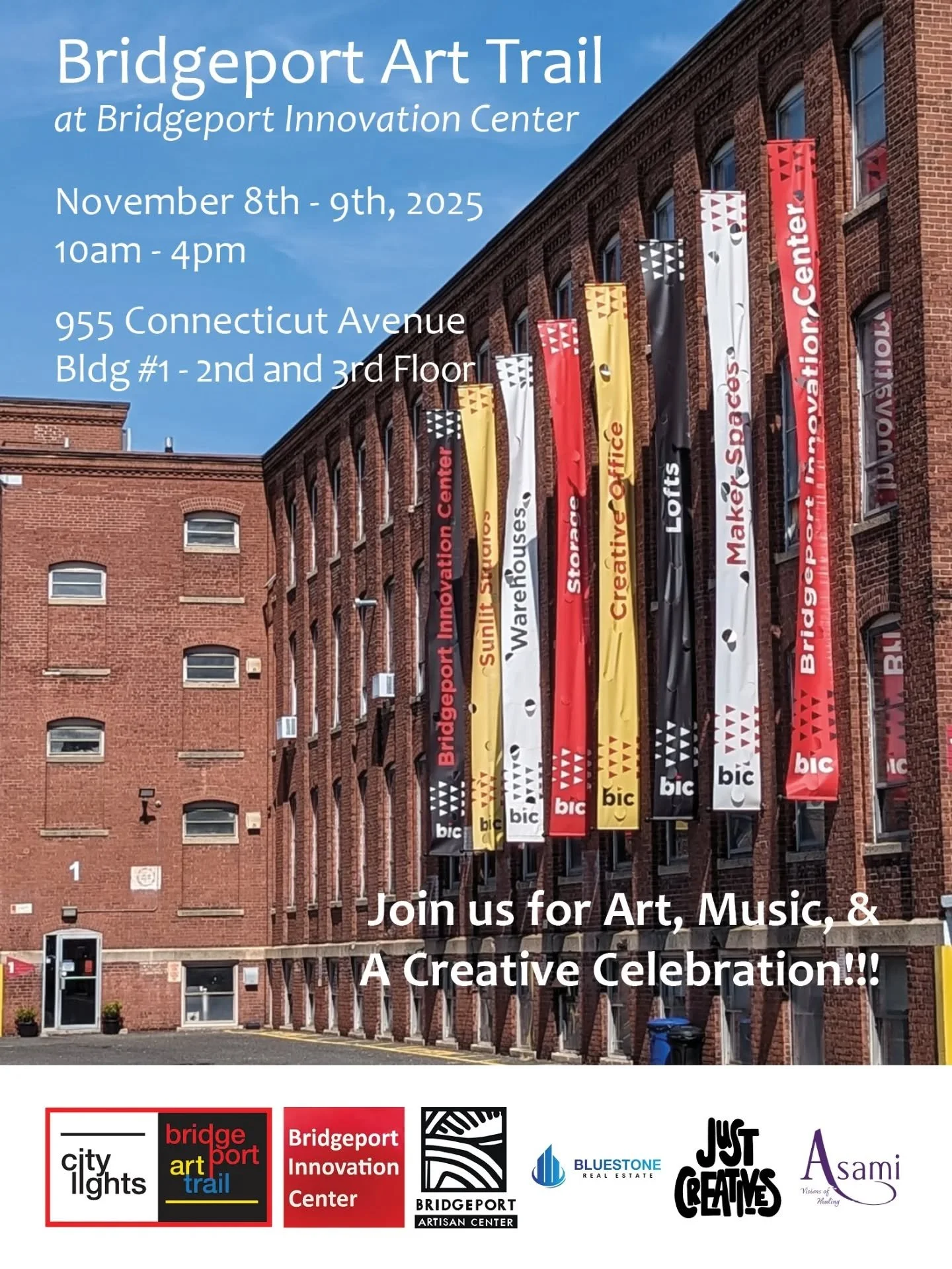 Mingle with art trekkers after the studios close, meet the artists. View an eclectic selection of art in this large group exhibit. Select works represent artists from the Bridgeport Art Trail family and the Artists Collective of Westport, demonstrating how the Bridgeport Art Trail extends throughout the city, county, state and beyond. Celebrate with Bridgeport Art Trail 2025 Ricky Award Honoree, Yolanda Vasquez Petrocelli. Watch and read more about the Ricky Award.